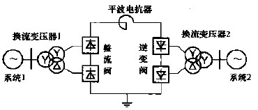 背靠背直流系統(tǒng)的整流站和逆變站的設(shè)備裝設(shè)在一個站內(nèi),也稱背靠背換流站。在背靠背換流站內(nèi),整流器和逆變器的直流側(cè)通過平波電抗器相連,而其交流側(cè)則分別與各自的被聯(lián)電網(wǎng)相連,從而形成兩個交流電網(wǎng)的聯(lián)網(wǎng)。兩個被聯(lián)電網(wǎng)之間交換功率的大小和方向均由控制系統(tǒng)進行快速方便的控制,為了降低換流站產(chǎn)生的諧波,通常選擇12脈動換流器作為基本換流單元。