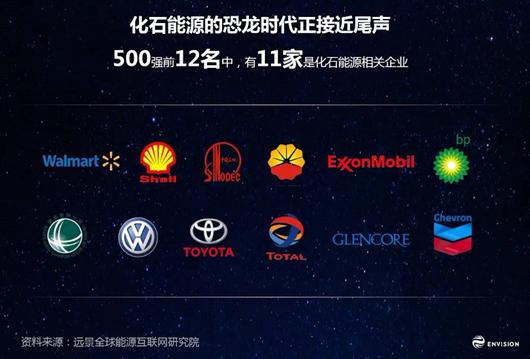 如果我們把視野轉(zhuǎn)到我們的經(jīng)濟(jì)社會(huì),2015年的500強(qiáng)前12名當(dāng)中,你會(huì)發(fā)現(xiàn)有11家是化石能源相關(guān)的企業(yè),其中9家是化石能源的生產(chǎn)和交易商。