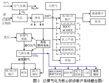 圖2以煤氣化為核心的多聯(lián)產(chǎn)系統(tǒng)概念圖