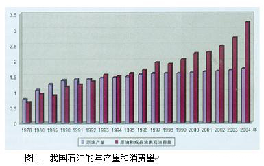 圖1我國石油的年產(chǎn)量和消費(fèi)量