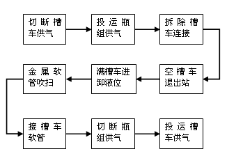 ②進站安全措施。主要有三項:一是槽車掛靜電接地;二是槽車車輪枕木固定;三是槽車排氣管放阻火器。
