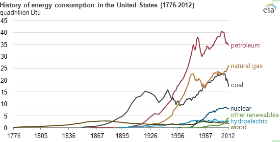 圖 1 美國一次能源消耗構(gòu)成變化的歷史數(shù)據(jù)(引自IEA網(wǎng)頁[5])