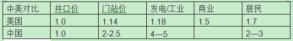 表2 中美兩國天然氣從井口到最終消費價格變化的對比