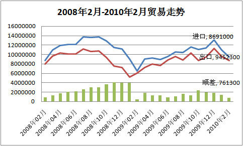2010年2月出口同比增45.7% 遠(yuǎn)高于市場(chǎng)預(yù)期
