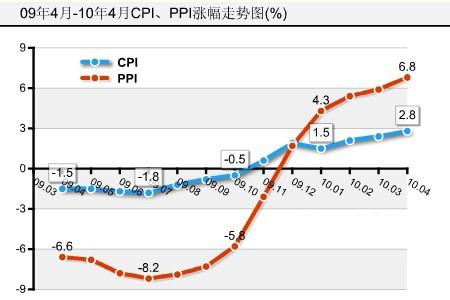 4月份CPI同比漲2.8% PPI同比漲6.8%