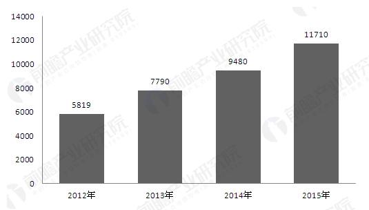 2012-2015年中國生物質能發(fā)電并網容量(單位:兆瓦)