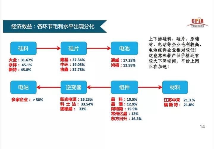 50GW的新增光伏裝機容量,今年光伏全產業鏈都趕上了好年景,中國光伏行業協會秘書長王勃華在發言時展示了一張圖片,可以更加直觀地看到光伏制造業今年的日子是很好過的,尤其是硅片、硅片上游環節,逆變器企業的毛利率水平也令人羨慕。