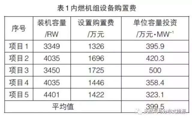 上海市現(xiàn)有的5個區(qū)域式天然氣分布式供能項目內(nèi)燃機裝機容量及設(shè)備購置費用如表1所示,全市分布式供能系統(tǒng)發(fā)電機組單位容量投資參照該5個項目發(fā)電機組購置費的平均值(399.5萬元/MW)計取(400萬元/MW)。
