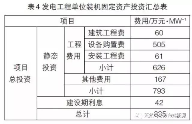 根據(jù)上述測算,分布式供能項目發(fā)電工程靜態(tài)投資為793萬元/MW,資金籌措方案按資本金20%,銀行貸款80%考慮,建設(shè)期兩年,第一年貸款比例為50%,第二年為50%,貸款利率為6.55%,則單位裝機建設(shè)期利息為42萬元/MW。