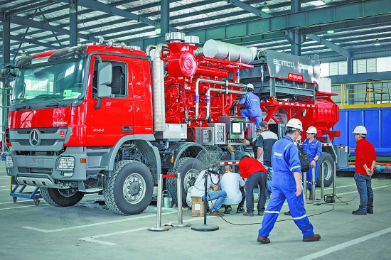 寶石機(jī)械公司成都分公司專用車公司2300型壓裂車生產(chǎn)現(xiàn)場。通訊員陳立希攝