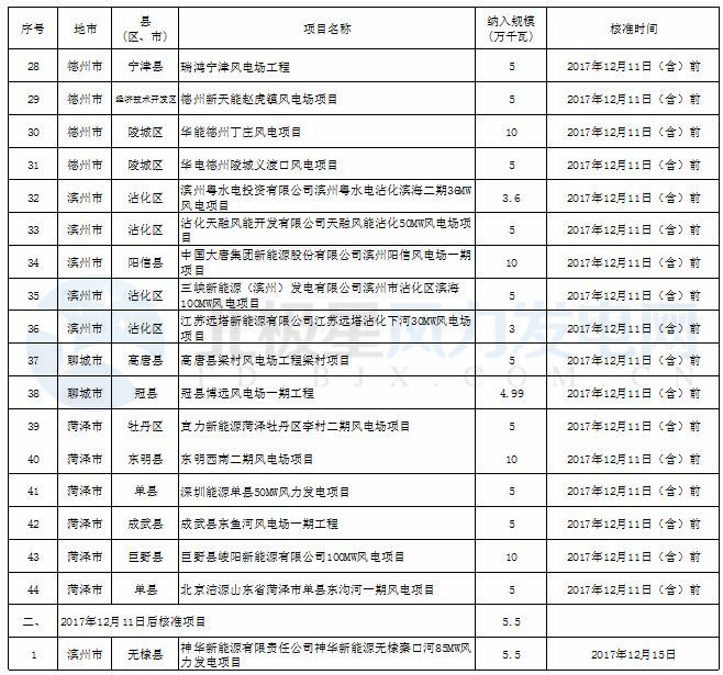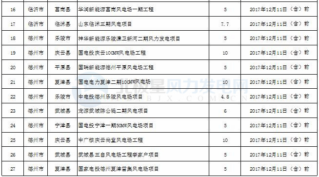 2017年度山東省風(fēng)電開發(fā)建設(shè)方案項(xiàng)目核準(zhǔn)情況公示(截止12月17日)