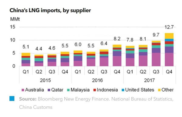 但中國(guó)(以及美國(guó))各自已經(jīng)簽署完成了大部分的天然氣供應(yīng)合同,這是不可更改的事實(shí)。并且美國(guó)已經(jīng)售出了其2018年LNG出口量中的1300萬噸,中國(guó)也已簽訂了總共4200萬噸的LNG進(jìn)口合同。這意味著美國(guó)還能夠再向中國(guó)出口200萬噸的LNG。這一數(shù)字大約相當(dāng)于2017年美國(guó)對(duì)中國(guó)的LNG出口量,約合6.13億美元。