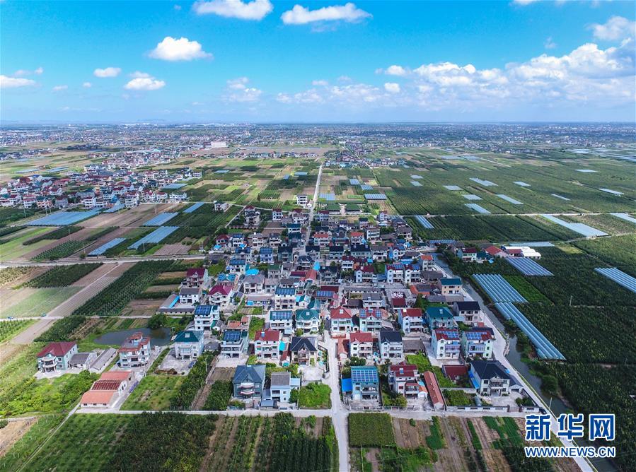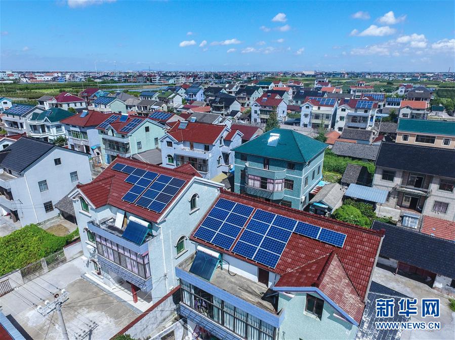 8月29日,慈溪市周巷鎮小安村的一些民居屋頂安裝了光伏設備(無人機拍攝)。  新華社記者 徐昱 攝