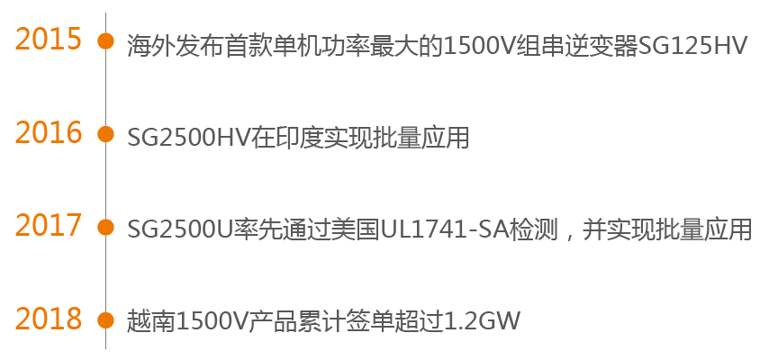 相較于國內,國外如歐洲、北美、印度等光伏市場,在1500V技術研究及市場應用上更加成熟。陽光電源積極實施“走出去”戰略,針對不同國家和地區市場準入標準分別開展針對性的技術創新和研發活動,不斷推出符合市場準入要求的高性能產品和服務。目前陽光電源“1500V+大方陣+高超配”先進系統解決方案,應用足跡已遍布歐洲、美國、印度、越南等多個市場,成為全球光伏市場降本增效的首選。