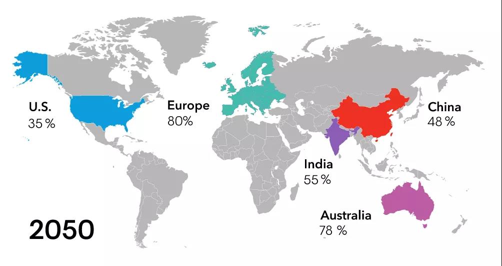 美國電力工業(yè)將繼續(xù)以廉價的可再生能源和天然氣發(fā)電取代老化的煤電、核電,并以此成為全美主要的發(fā)電來源。煤電和核電由于老化和經(jīng)濟(jì)性的考慮將逐漸淡出,到2050年這兩種發(fā)電形式幾乎不再有。在現(xiàn)有技術(shù)框架下,暫時看不到美國核電復(fù)興的可能。