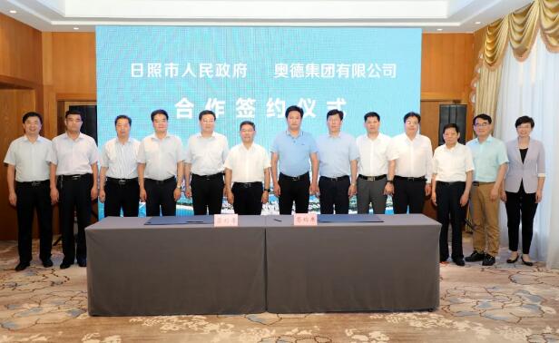 6月19日,奧德集團(tuán)與日照市舉行集中簽約活動(dòng),奧德集團(tuán)總裁林波分別與日照市委副書記、市長李永紅,日照市委常委、副市長劉兆亮?xí)劇?/p>