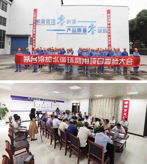 茅臺集團(tuán)黨委委員、副總經(jīng)理劉大能和萬波出席項(xiàng)目投用儀式。會議上萬波表達(dá)了對項(xiàng)目順利投用的高度肯定與贊揚(yáng)。來自茅臺制酒車間的運(yùn)行情況反饋,該車間自試運(yùn)行期間使用冷卻水循環(huán)工藝以來,車間生產(chǎn)用水大幅下降,取酒生產(chǎn)穩(wěn)定,節(jié)水率達(dá)到90%以上。