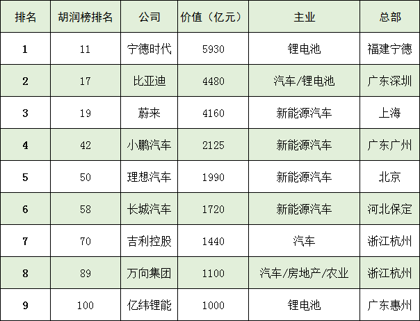 最耀眼的明星來自新能源領域。連胡潤都表示:“今年是電動汽車第一次排名這么突出、這么靠前,中國電動汽車企業明顯引領這個全球級的新興產業。”