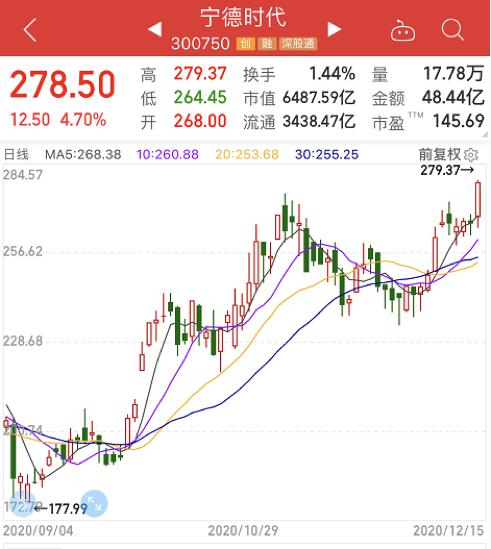 受此消息刺激,昨日寧德時代大漲4.7%,股價創出歷史新高,收盤市值達到6488億元,超過海天味業,排名A股上市公司A股市值榜第十位。