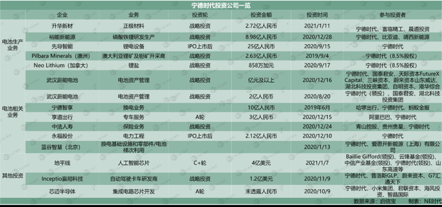 接上一篇《寧德時代投資了哪些企業》,NE時代挖掘了寧德時代部分2019年下半年之后直接增資或者投資的企業,我們清晰地發現,寧德時代在電池生產業務上更加追求對主要材料供應鏈的掌控權,充、換電業務上試圖形成閉環產業鏈,并且加碼保險業務試圖對電池資產后市場服務進行引導。