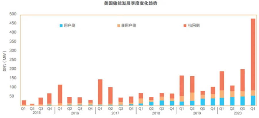 在回答這個問題之前,我們先看一則新聞。根據美國儲能協會(ESA)和伍德麥肯錫咨詢公司聯合發布的報告,美國儲能市場在2020年第三季度裝機476MW/764MWH,比之前的單季度裝機記錄——也就是2020年的第二季度——增長了240%。