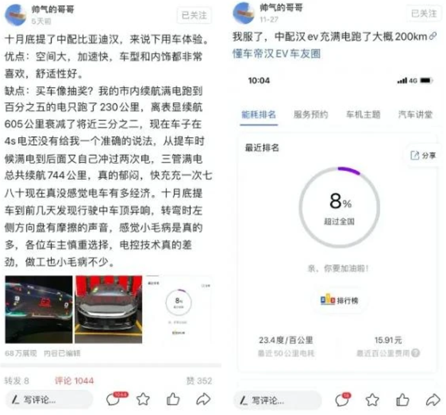 這不,前幾天一位網友聲稱,自己駕駛的比亞迪漢EV在經過多次冬季試驗后,發現充滿一次電后的實際續航僅有230公里,遠遠低于官方宣傳的600公里續航,幾乎縮水了三分之二,甚至還發生過剩余續航突然斷崖式減少的情況。