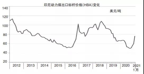 但10月以后,受中國煤炭進(jìn)口強(qiáng)勁需求的拉動(dòng),印尼動(dòng)力煤出口標(biāo)桿價(jià)格急劇拉升,到2021年2月,已拉升至每噸87.79美元,遠(yuǎn)超疫情前價(jià)格。