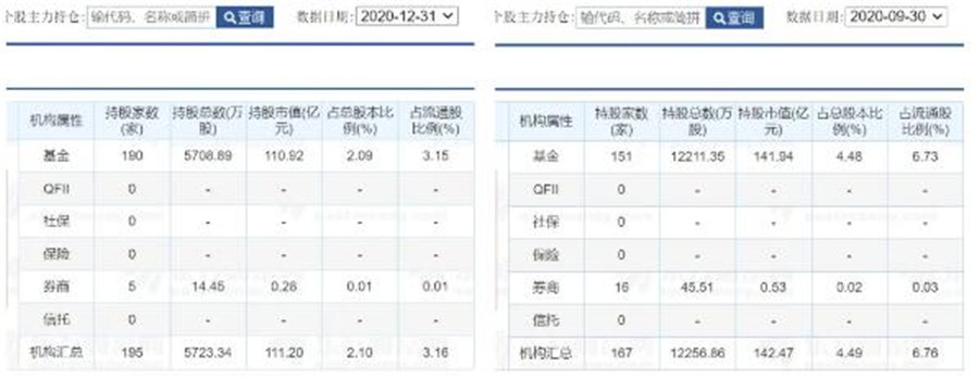 一個(gè)可對比的數(shù)據(jù)是:2020年第三季度,比亞迪的持倉機(jī)構(gòu)數(shù)為167家,但持股總數(shù)達(dá)到12256萬股,占流通股6.76%,對比來看,僅2020年最后一個(gè)季度,機(jī)構(gòu)減持了近半。