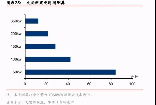 這兩種規(guī)格的充電樁基本上算是市面上比較大功率的充電樁了。按照華泰證券做的充電時間測算,80kw、160kw的充電樁至少也得半個小時才能充滿。