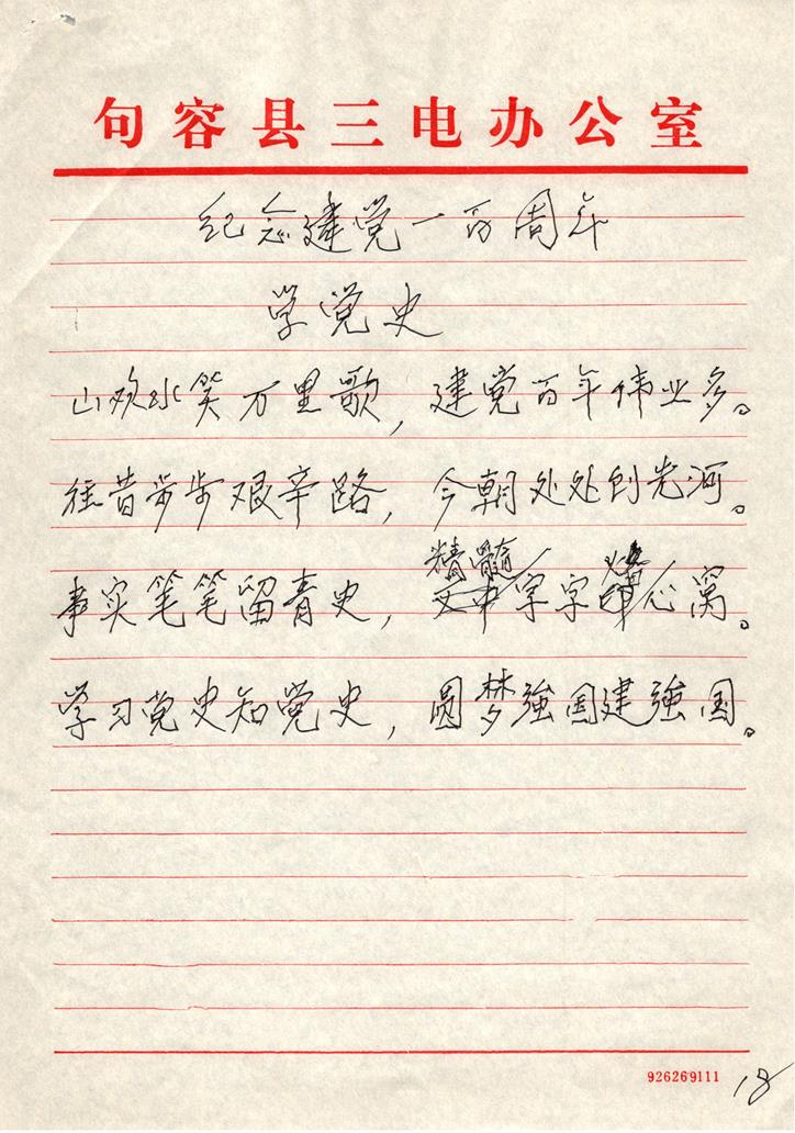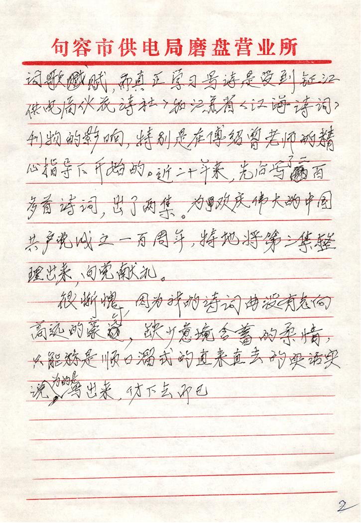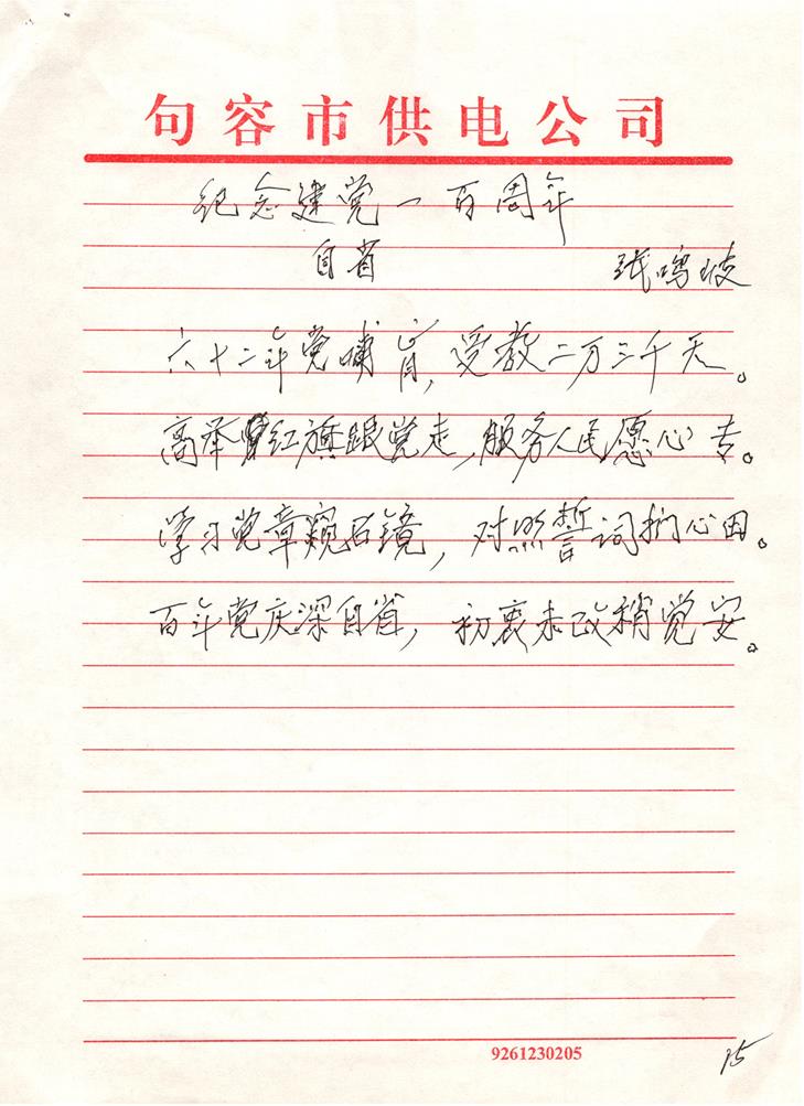 原句容供電局黨委書記,現(xiàn)如今已84歲高齡的老黨員張鳴岐同志就受此熏陶,利用退休后的空余時間,認真專研學習唐詩宋詞。他熟讀詩詞曲賦,通曉古今大事,縱覽時事變局,先后創(chuàng)作了200余首詩詞,并匯編成選集2冊。值此建黨百年之際,張鳴岐同志用自己最近創(chuàng)作的詩詞,匯編成第3冊,向黨的百年華誕獻禮!這也是一名老黨員對黨致以最崇高的敬意!