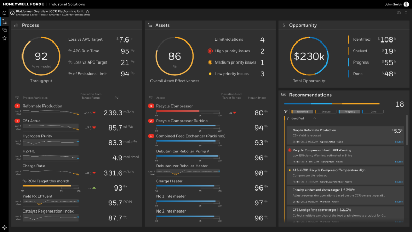 在生產過程和設備關聯的基礎上,霍尼韋爾智能工廠解決方案能夠部署在云端或當地數據中心,為客戶提供基于設備與過程的智能分析,該解決方案把煉油流程的實時機理模型,運用到了智能工廠里面,幫助客戶更加直觀、高效地了解工廠的操作優化路徑。