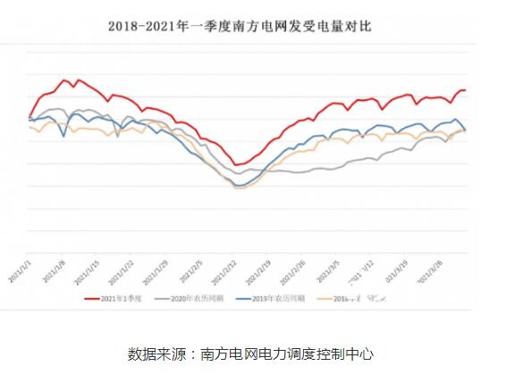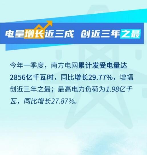 今年一季度,南方電網(wǎng)負(fù)荷、電量增長(zhǎng)顯著,特別是春節(jié)后負(fù)荷恢復(fù)速率超過(guò)2019年。