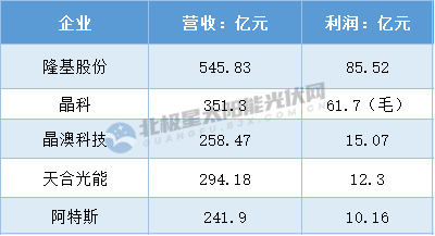 結(jié)合企業(yè)2021年組件出貨目標,TOP 5組件出貨將進一步增至153-170GW,較去年再提升63%—81.1%。具體來看,除隆基以40GW(含自用)坐穩(wěn)冠軍寶座外,根據(jù)出貨目標,天合有望再進一步,而晶科、晶澳產(chǎn)能不分上下、競爭激烈,阿特斯大概率仍居全球第五。從產(chǎn)業(yè)鏈布局來看,TOP 5企業(yè)均為垂直一體化企業(yè),其優(yōu)勢在于主產(chǎn)業(yè)鏈各環(huán)節(jié)相匹配程度高,既可保障上游原材料供應(yīng),還可減小中間環(huán)節(jié)市場供求關(guān)系變化對公司盈利能力的影響,增強企業(yè)抗風(fēng)險能力。在去年疫情及硅料價格跳漲影響之下,TOP 5企業(yè)營收、利潤成績喜人,營收總額達到1691.68億元,利潤達到184.75億元。