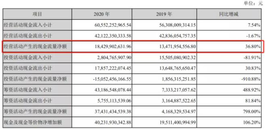 不過,寧德時代現金流非常充裕。2020年,寧德時代經營性現金流為184.30 億元,同比增長36.8%,為凈利潤的3.02 倍,其中2020第四季度經營性現金流為 81.24 億元,同比增長158.1%,環比增長81%;報告給出的原因是,主要是產品銷售情況良好,部分客戶支付預付款。