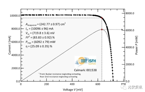 日前,經德國Institutfür Solarenergieforschung in Hameln ( ISFH )研究所測試,隆基電池研發中心單晶雙面N型TOPCon電池轉換效率達25.09%,基于單晶硅片商業化尺寸TOPCon電池效率首次突破25%,再次成為新世界紀錄的創造者。