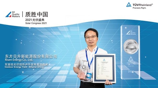 據悉,東方日升的高效雙面組件通過主辦方隨機抽樣選取,在特定氣候條件下接受發電性能測試,然后由TUV萊茵的專家團隊結合外部數據與各項因素進行深入分析,最終東方日升憑借抽樣組件優異的發電性能斬獲“雙面組光伏組件戶外發電量優勝獎”。榮膺此獎體現出東方日升具有成熟的技術能力,可保障光伏組件在戶外的發電性能,并為投資商和業主的采購決策提供公正的評判依據。
