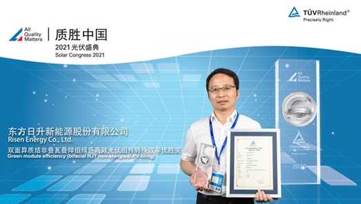 4月28日,由德國萊茵TUV集團(以下簡稱“TUV萊茵”)主辦的第七屆“質勝中國”光伏盛典暨“質勝中國優勝獎”頒獎典禮在杭州召開。光伏龍頭企業東方日升受邀出席,并憑借雄厚的研發實力和高效的組件產品,榮膺“雙面組光伏組件戶外發電量優勝獎”、“雙面異質結非疊瓦疊焊組綠色高效光伏組件轉換效率優勝獎”兩項大獎。
