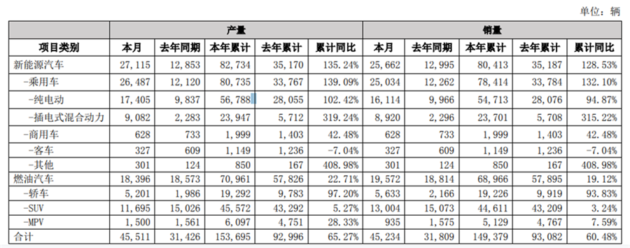 根據2021年4月份比亞迪的產銷情況來看,新能源汽車產量累計同比達到135.24%,銷量累計同比高達128.53%。乘用車產量累計同比達到了139.09% ,銷量累計同比高達132.10%。插電式混合動力車產量累計同比高達319.24%,銷量累計同比達到了315.22%,并且其他類型車輛的產銷量大多均有顯著提升。