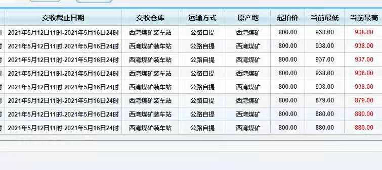 曹家灘煤礦最新競價,本期總交易量25萬噸,原煤18萬噸,較上期增加4萬噸,3-8塊7萬噸,較上期增加1萬噸,末煤未參與競價;本期原煤起拍價630元/噸,較上期上漲50元/噸,3-8塊起拍價690元/噸,,較上期上漲90元/噸;原煤最高成交價901元/噸,較上期上漲244元/噸,較起拍價上漲271元/噸;3-8塊最高成交價919元/噸,較上期上漲221元/噸,較起拍價上漲229元/噸。