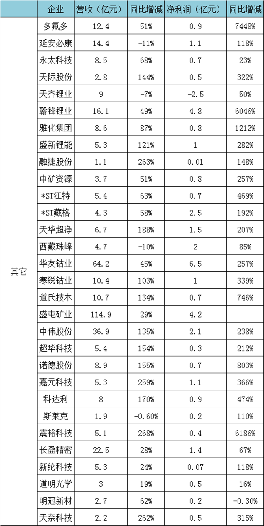 其中,贛鋒鋰業凈利潤同比增長超60倍,天齊鋰業仍處于虧損狀態但虧損收窄,寒銳鈷業凈利潤同比增長超3倍等。