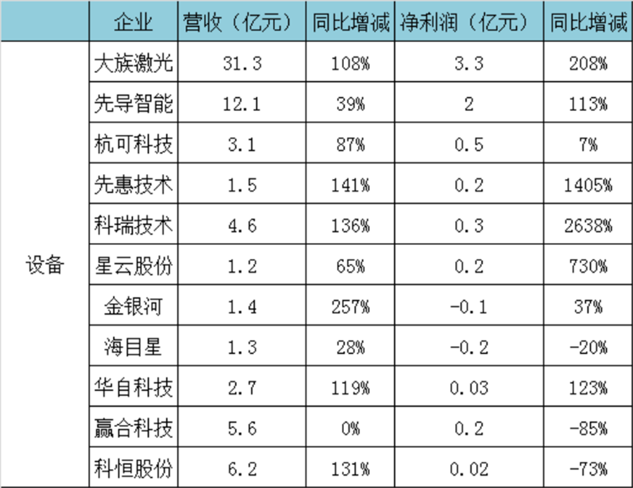 從業績上來看,頭部設備企業受益明顯。其中先導智能一季度凈利潤同比增長113%,一季度新簽訂單38.49億元(不含稅)。