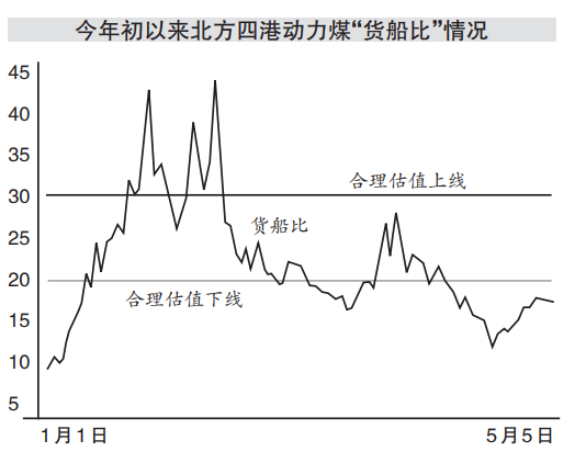 一方面電煤日耗明顯減少。5月9日,CCTD沿海八省(直轄市)樣本電廠的電煤日耗為172.9萬噸,比1月上旬的高點減少了70萬噸,下降了30%左右。另一方面,電煤采購的緊迫性明顯降低。5月9日,CCTD沿海八省(直轄市)樣本電廠的電煤庫存可用天數為13.8天,比1月上旬提高了4天以上。“近期北方四港的‘貨船比’指標明顯好于1月上旬水平。”李學剛認為,現貨動力煤供求關系及其價格對整體動力煤市場的影響被夸大,而且在上漲的市場中,大型煤企獲得的利益遠遠小于小型煤企。