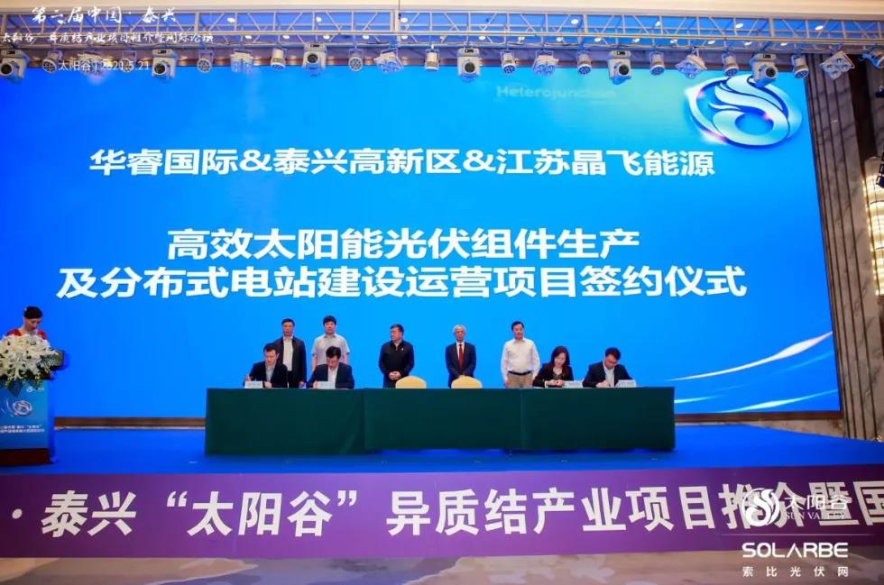 泰興高新區(qū)管委會與晶飛能源簽訂高效太陽能光伏組件生產項目合約、