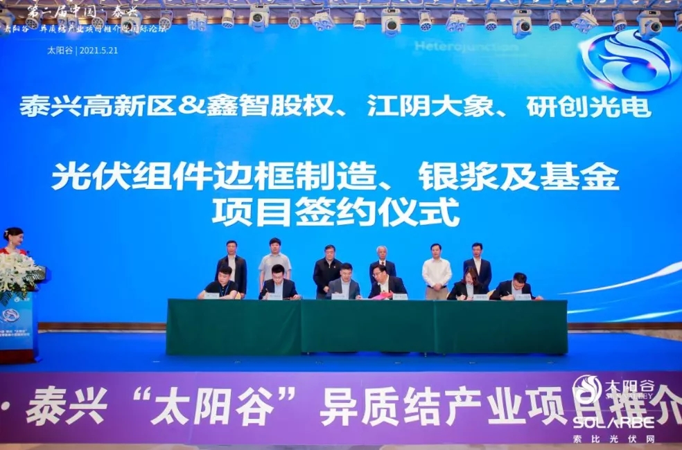 泰興高新區(qū)管委會與江陰大象簽訂光伏組件邊框制造項目合約、與研創(chuàng)光電簽訂