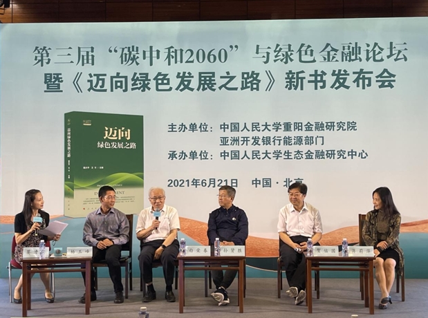 繼第一屆、第二屆“碳中和2060”與綠色金融論壇后,2021年6月21日,中國(guó)人民大學(xué)重陽(yáng)金融研究院(人大重陽(yáng))、亞洲開(kāi)發(fā)銀行能源部門(mén)主辦,中國(guó)人民大學(xué)生態(tài)金融研究中心承辦的第三屆“碳中和2060”與綠色金融論壇在中國(guó)人民大學(xué)隆重召開(kāi)。會(huì)上發(fā)布了由亞洲開(kāi)發(fā)銀行能源部與人大重陽(yáng)共同策劃完成的《邁向綠色發(fā)展之路》圖書(shū)。近30萬(wàn)觀眾在線上參與了會(huì)議。