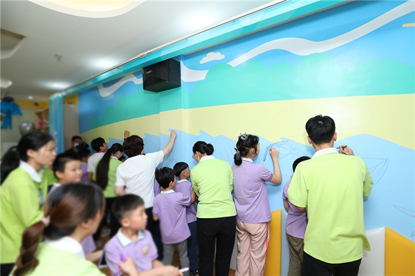 青聰泉創辦人陳潔校長表示:“繪畫藝術治療有助于促進自閉癥兒童的心理健康發展和認知功能的恢復。科思創通過創新涂層技術,將普通的墻面打造成一塊可自由繪畫的區域,讓孩子們無拘無束地用各色畫筆展現藝術創意,老師們則能夠輕易地將圖畫擦干凈,保持墻面清潔,實現反復使用。此外,采用的涂料從施工到投入使用都沒有明顯氣味,保障了孩子和老師的健康。”