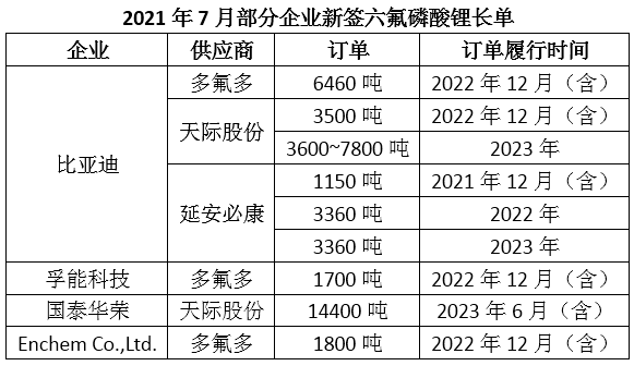 本月以來,包括比亞迪、孚能科技、江蘇國泰等電池和電解液生產企業已經開始為未來數年的六氟磷酸鋰原料采取行動。