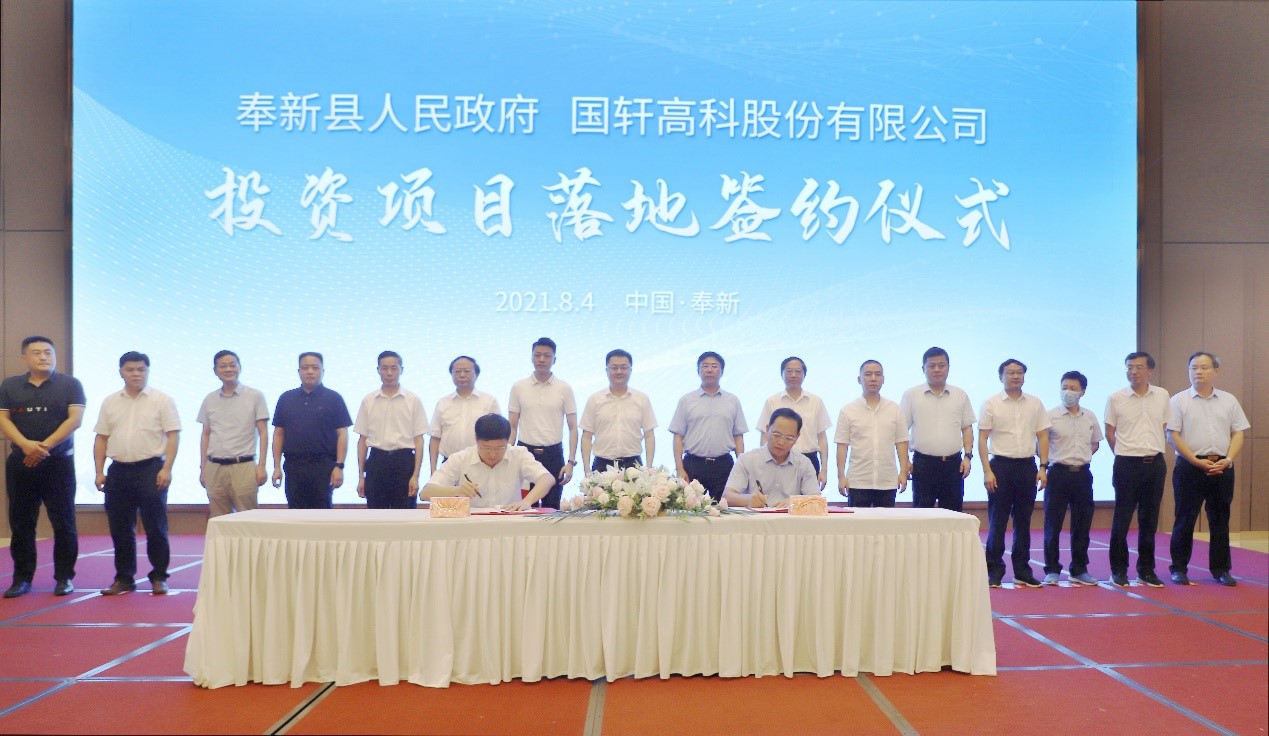 奉新縣委副書(shū)記、縣政府縣長(zhǎng)提名人選喻軍,江西國(guó)軒新能源科技有限公司董事長(zhǎng)黃章喜代表雙方簽約