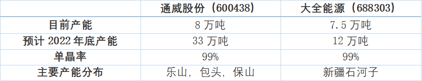 新特能源內(nèi)蒙的10萬(wàn)噸完全釋放可能要等到2023年,目前單晶占比90%(興業(yè)證券研報(bào))。