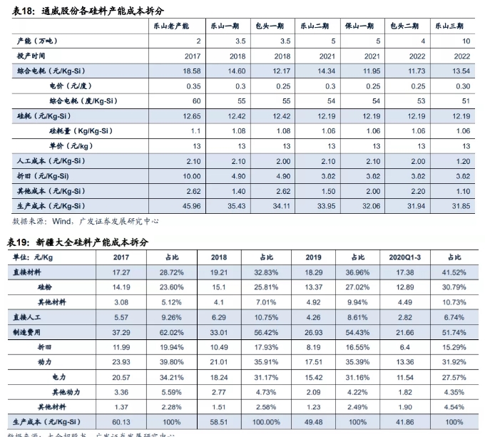 接著看評(píng)價(jià)多晶硅賽道選手的重頭戲,關(guān)于通威和大全的生產(chǎn)成本。
